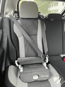 Because of how much higher kids sit when the seat belt trainer is in place, I was interested to test her lap belt fit without it. Much to my surprise, even though the belt was definitely a little higher up on her pelvis, I also found this belt fit to be safe.
