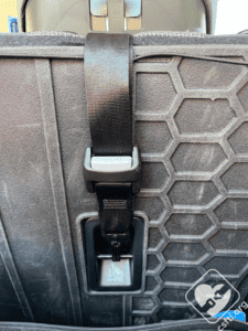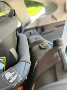 Top Tether Storage: the top tether attaches to the outside of the seat’s shell when not in use.
