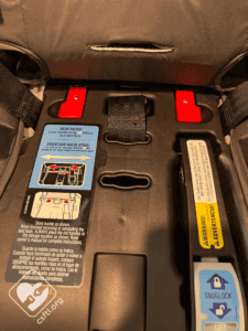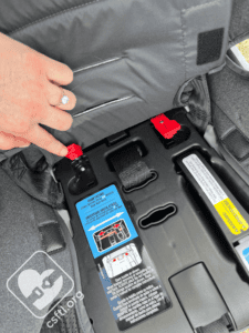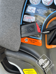 Lower Anchor Storage: the lower anchors store on the front of the seat.