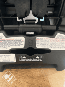 Manual Storage: the manual stores on the back side of the base of the car seat in the center.