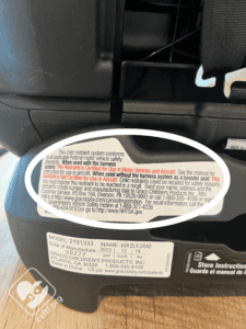 FAA Approval Label: the 4Ever DLX Grad is approved for use on aircraft when it’s in harnessed mode. The approval label is the red sentence on the label on the backside of the base of the car seat.