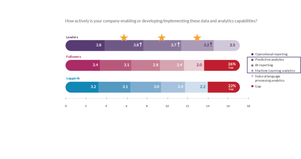 Figure 2: Levels of activity in building data and analytics capabilities by Leaders, Followers and Laggards segments