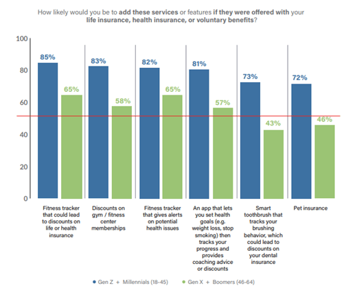 Loyalty programs are now a cultural norm. Gen Z and millennial customers, especially, are “in it” for the perks. Insurance products designed with perks involving other corporate relationships or healthier behaviors stand a greater chance of uptake than ever before. Points mean dollars. Usage means loyalty.