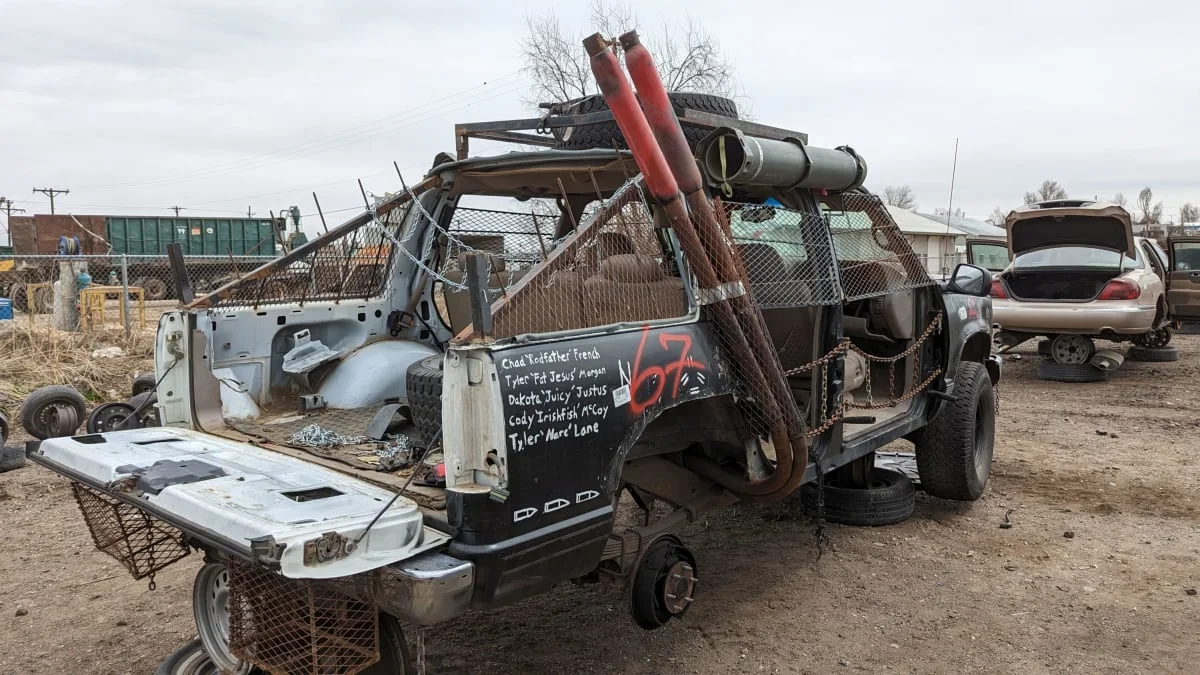 My home state of Colorado is host to multiple wild road-and/or-off-road rallies featuring amusingly modified hoopties doing things they were never designed for. There’s the Lemons Rally, the Gambler 500 and the Rocky Mountain Rambler 500, to name a few, and — as you’d expect — many of the participating vehicles wind up in the Front Range boneyards that I frequent. Today, we’ll be looking at a Rocky Mountain Rambler 500 veteran that looks like it just rumbled off the set of a Mad Max movie.