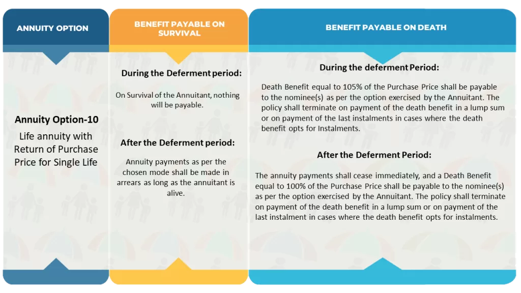 Existing policyholders, including the nominee or beneficiary of deceased policyholders, will get an additional benefit through an increased annuity rate per thousand Annual Equivalent Premium (in regular premium) or Purchase Price (in single premium). However, existing policyholders must buy this plan from any Agent/Corporate Agent/ Broker/ Insurance Marketing Firm. Benefit available to existing policyholde is given below:
