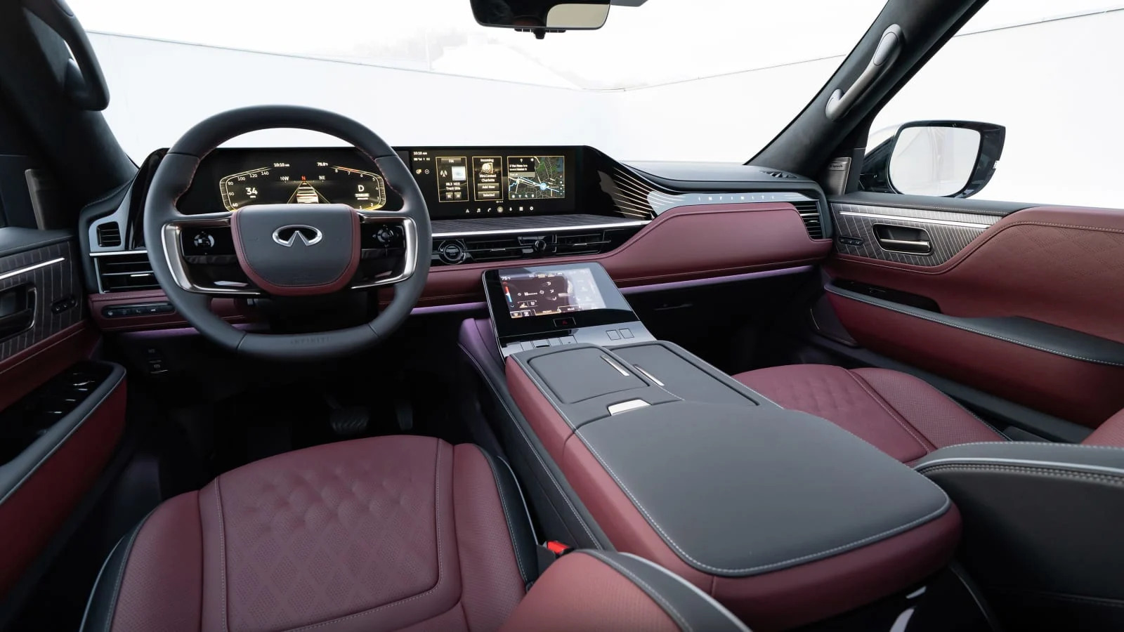 Although I question the utility of some of the QX80’s technology, I can’t deny the practicality of the 170-degree front wide view camera feature. In an Infiniti-designed demonstration, the camera was able to see a child’s bicycle hidden behind another SUV parked just forward and to my right. It was not visible to me in the driver’s seat. The tech is even more impressive when displayed across both screens.