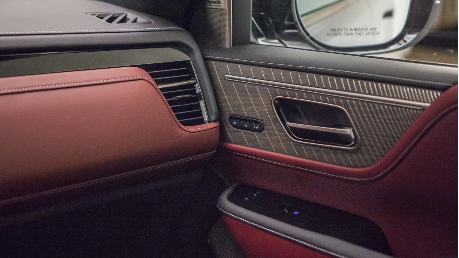 Other cool camera tricks are an invisible hood feature that projects an image of what is under the car to the two interior screens as well as a 360-degree camera that can detect moving objects and comes with eight pre-selected viewing angles. I’m also here for the rear camera mirror, which provides a wide-angle video feed of the view behind the car directly to the rear view mirror. It’s particularly helpful when your rearview would otherwise be filled with the heads and luggage of passengers.