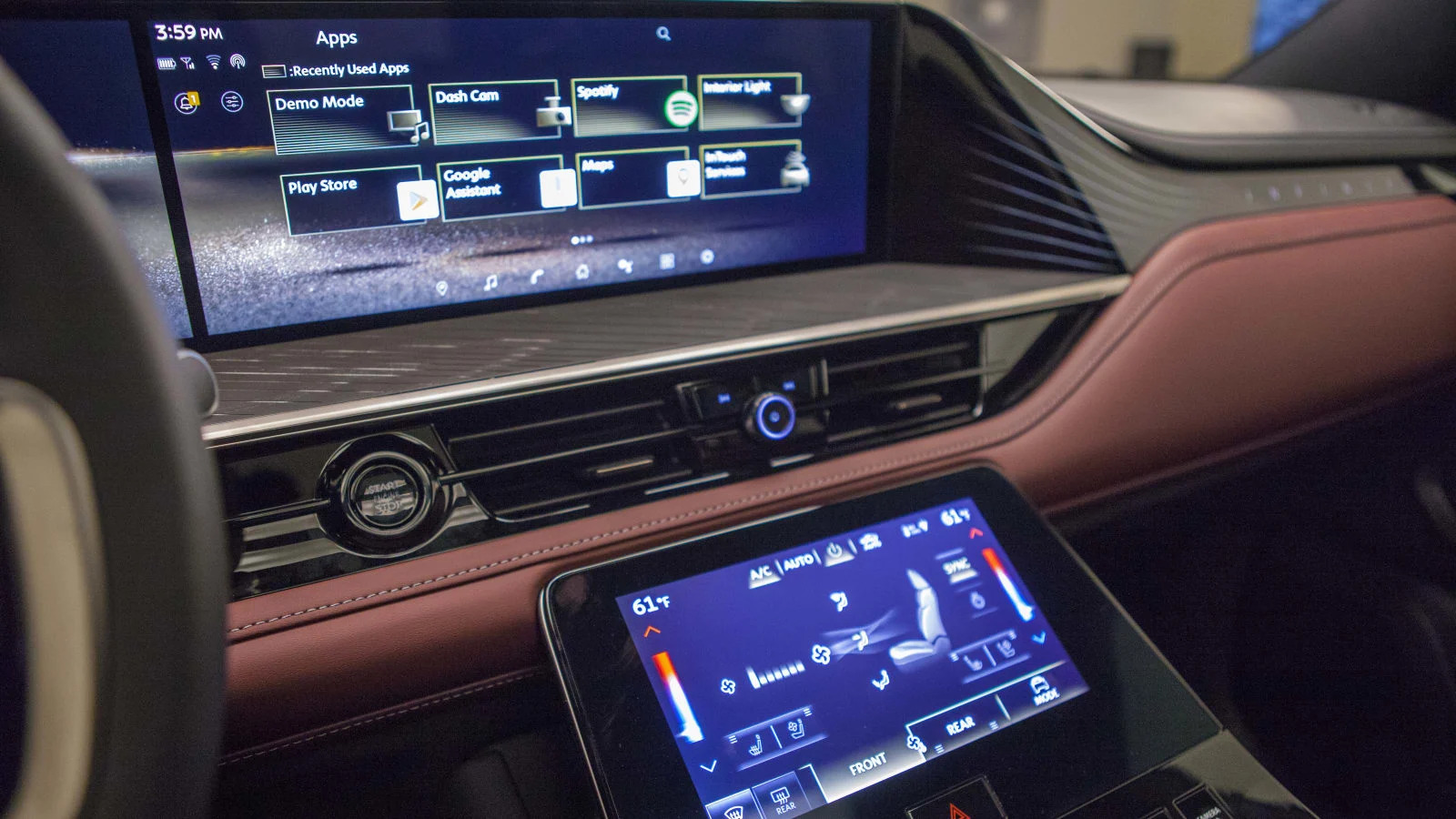 Dominating the dash are two 14.3-inch displays. The gauge cluster is configurable three ways, and the center display comes with Google Built-in. That means integrated Google Maps with greater functionality than the CarPlay norm, downloadable apps from Google Play, and voice control courtesy of Google Assistant. What’s really cool is that navigation directions, music and phone calls can be set to play just through the driver’s side headrest speaker, the most novel of 24 other speakers included with the Klipsch Reference sound system (Sensory and Autograph trims). Wireless Apple CarPlay and Android Auto are standard as well, but you won’t get the individual audio function.