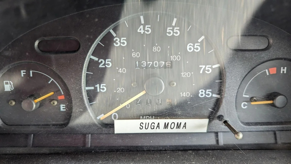 For a disposable econobox, this car got respectably close to the 150,000-mile mark during its life. Was “SUGA MOMA” the name of the car?
