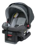 Graco SnugRide SnugLock 35 Elite: 4-35 lbs.; up to 32″ tall; no-rethread harness with 15 height positions; 2 buckle positions; premium SnugLock DLX base which also acts as a lockoff for seatbelt installations; premium push-on LATCH connectors; EPS foam;  lower body positioning insert. See our complete SnugRide SnugLock DLX Review Here. Compatible with any single or double Graco stroller that accepts a car seat. Graco car seat adapters available for many other premium stroller brands. You have lots of choices!