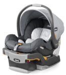 Chicco KeyFit 30 ClearTex: 4-30 lbs.; up to 30″ tall; 3 sets of harness slots; single buckle position; adjustable base; built-in lockoffs for seatbelt installations; unique “center-pull” LATCH tightening adjustment; premium push-on LATCH connectors; ClearTex fabric is free of flame-retardant chemicals; EPS foam; newborn insert (4-11 lbs. only).  KeyFit 30 Review Here. Compatible with any single or double Chicco stroller that accepts a car seat. Chicco car seat adapters available for many other premium stroller brands. You have lots of choices!