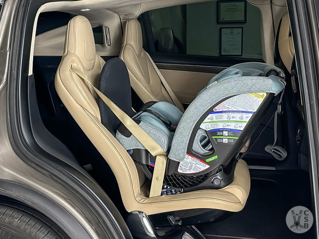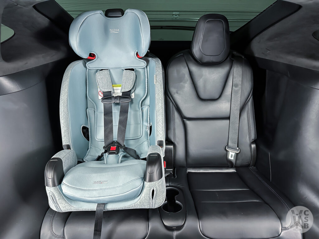 Installation is ClickTight lovely. While my car was being serviced, I had a loaner with typical Tesla “leather” bench seats that are as slippery as a banana on a linoleum floor. I only had to pull the seat belt a smidge tighter and Slim was rock-the-car solid. There’s nothing like a ClickTight installation! Ahhhh.