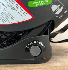 The seat has 8 recline angle positions, plus position B for booster mode. Any of the numbered positions can be used in harness mode to help install the seat at the correct angle for the child and the vehicle. To adjust the recline, press one of the gray buttons that can be found at the back of the seat on both sides of the base and recline or incline the seat as needed.