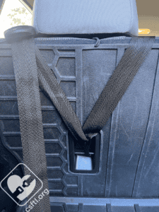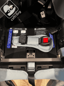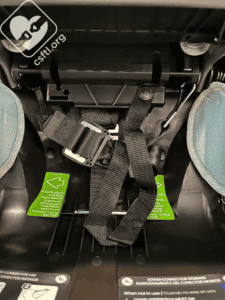 Check for movement at the belt path using the force of a firm handshake with your non-dominant hand. The seat should not move more than one inch side to side and front to back. If there is interference from the vehicle headrest, remove it the vehicle manual allows it.