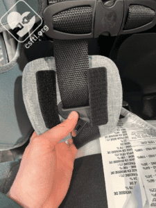 Move the comfort pads below the chest clip and tuck in the buckle tongues inside each comfort pad. I found this step to be challenging due to the buckle tongues being larger than the harness pads. I was able to get them in with the smallest amount of Velcro holding the pads together. Per Britax, this is to prevent caregivers from losing the comfort pads. If you are unable to follow this step, you can opt to keep them in a safe place, perhaps with the rear facing inserts.