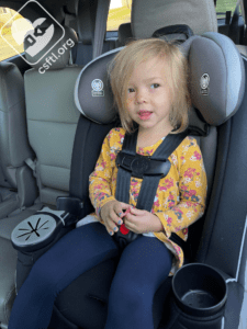This model is 4 years old, weighs 32 pounds, and is 39 inches tall. She is nearing the height limit for rear facing in the this seat. She is using the second crotch buckle slot. She found the seat to be comfortable. She also wasn’t a fan of the harness covers, so we removed them since they aren’t required.