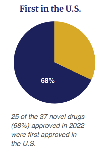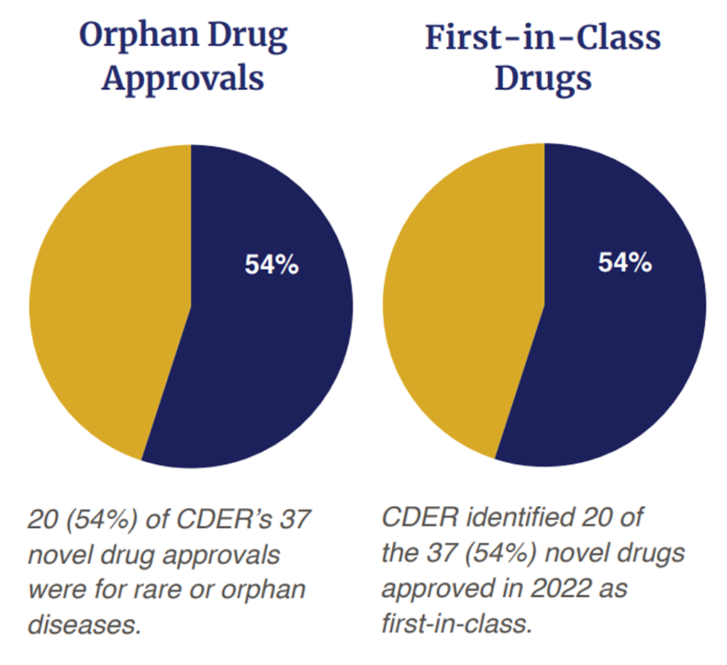 The year 2022 was a good, but perhaps not great year for innovation. According to the FDA’s Center for Drug Evaluation and Research’s (CDER) New Drug Therapy Approvals 2022 report, there were 37 novel drugs approved in 2022. This number is down from the historical rate of approvals between 2013-2021 (43.4 approvals per year) and especially down relative to the last 5 years (51.2 approvals per year).