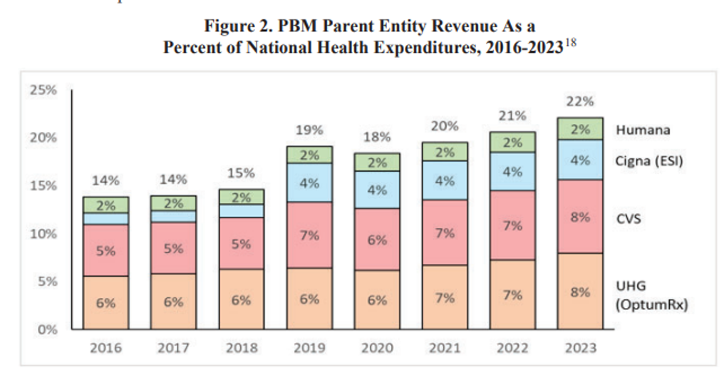 In fact, PBM parent companies’ revenue comprised 22% of all US national health expenditure as of 2023.