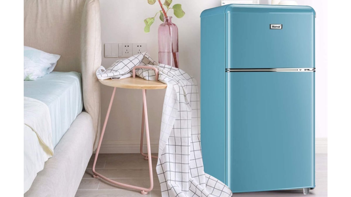 This compact option is a stylish dorm-style fridge. A cost-effective second fridge for office, garage, or den. It has two doors to keep fresh food and drinks separated from frozen items but at only 3.2 cubic feet space is limited so if you’re in need of storage for a lot of food and multiple cases of drinks you’re going to want to look elsewhere.