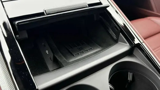 By moving the shifter to a pleasingly tactile tab next to the instrument panel and consolidating the climate controls, Porsche freed up space on the center console for a deep, easily accessed wireless charge bin. That’s good. Unfortunately, the bin that covers it is flimsy and struggled to close smoothly. Not good enough, Porsche.
