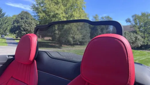 If you count the CLE as a member of the E-Class Cabriolet lineage, this is the third generation to have Mercedes’ AirCap system. It consists of the windshield header trim panel that rises up to reveal a mesh netting below (pretty much what you’d see in a sunroof wind deflector) and power pop-up wind deflector behind the back seat. They only operate together; you can’t use one or another. I can confirm that they do in fact deflect the wind and minimize air movement in the cabin. It’s definitely a bigger deal for those with long hair, however. I didn’t realize that much of a difference below 60 mph, and if anything, I found AirCap to actually be a detriment at those lower speeds for a different reason: noise. Air hitting that mesh in the windshield header is a lot louder than the cabin is at the same speeds when not deployed. It makes me wonder what it would be like if you could pop up the deflector behind the back seats but not the windshield header.