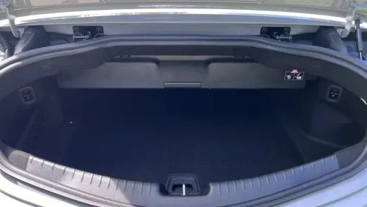 It just has to fit in around the trunk separator. This took a little bit to figure out, and it started with pushing a mysterious button on the inside of the trunk lid. That flipped a little piece of plastic up and down. It has to be down for you to put the roof down, and if something is in the way, the separator will just bounce back up. I was able to pack a fair about of cargo — a big pool bag full of toys and towels, a sizable cooler bag and a full backpack — rearward of that separator for a run to the pool. Everyone was happy.