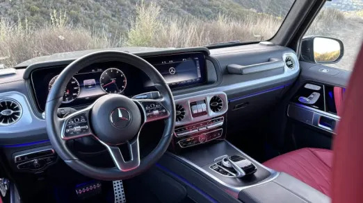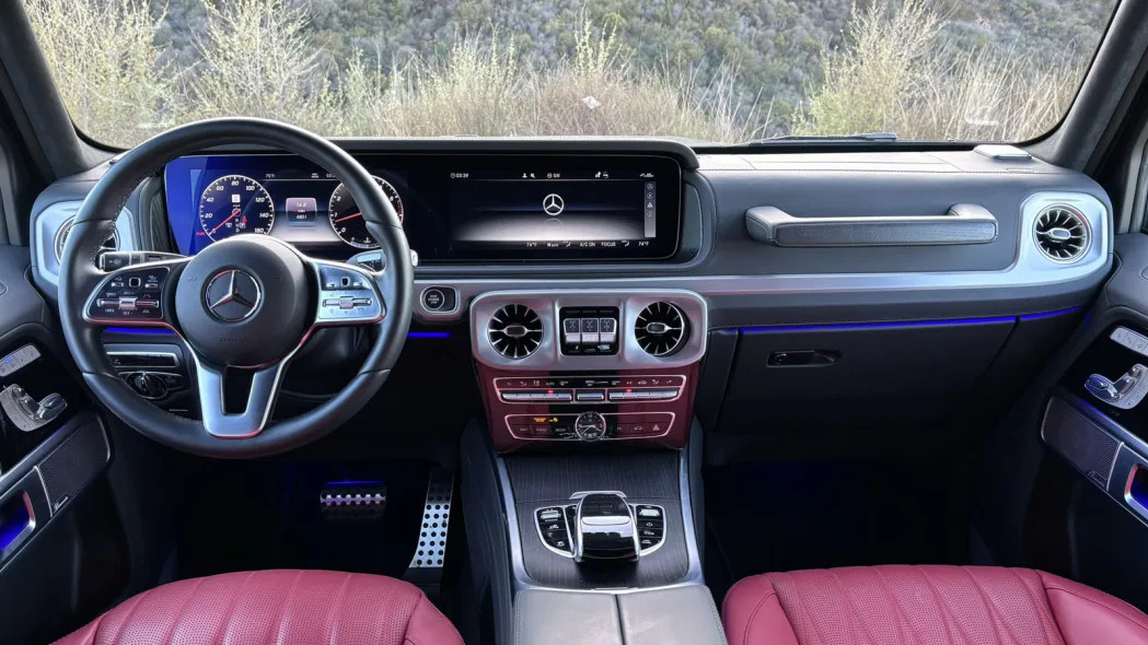 “The AMG just doesn’t feel right on road,” wrote me. “It’s hard to complain about extra power, but it’s unnecessary, and the AMG’s firmer ride and stiffer steering actually make the G worse to drive — the standard 22-inch wheels definitely don’t help. It’s conflicted, frankly a bit silly (the new red exterior accents really drive that point home), and it’s still so tall, tippy and heavy to realistically appreciate any semblance of a handling advantage.”