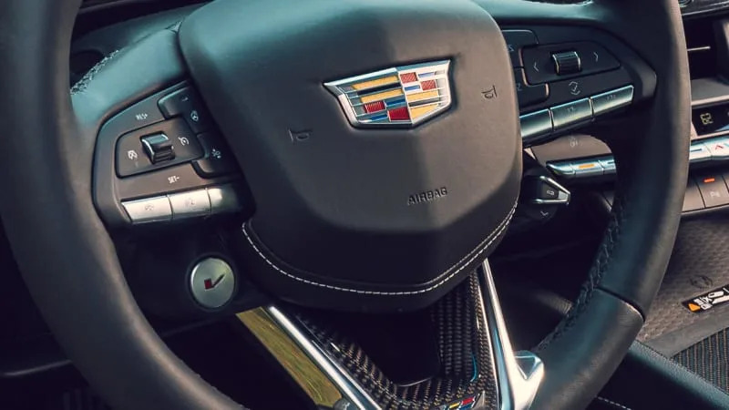 This is a lot to keep track of, admittedly, but Cadillac makes it simple to access. The rocker switch on the right side of the wheel cycles through PTM modes with the simple flick of your thumb — up to tick toward Race, down to tick toward Wet. You can also program a PTM level into your individual drive mode if you’re so inclined, and then assign that to the “V” button on the steering wheel. Set it once, then all you have to do is double-tap the button on the left side of the wheel and boom, you’re ready to rock.