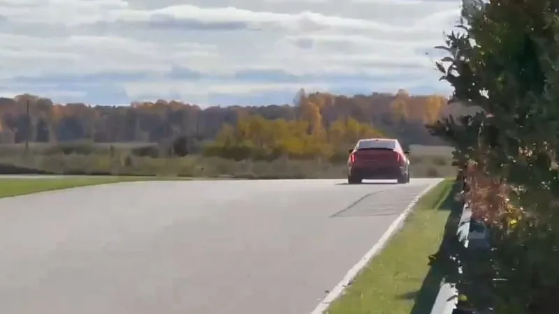 In my case, learning the Blackwing’s language means learning how its electronic systems communicate. While you can’t hear the computers talking to the differential in the strictest sense, the outcome of that interplay is certainly tangible. While half the fun of RWD is the ability to steer with the throttle, there’s a fine line between tweaking your line with your right foot and merely overdriving the car. PTM not only maintains that barrier, but helps you approach it. Charging into the fast sweepers on the back section, the rear end responds telepathically to throttle inputs. Two or three miles per hour is the difference between right and wrong back here, corresponding to just millimeters of pedal travel. Push to tuck in, ease off to open up the line. Nothing to hit? Hammer down. Cadillac pegs the Blackwing’s max sustained lateral acceleration at 1.04g. In my final few runs, PDR clocked me pulling a steady 1.0g through each curve. The car is clearly delivering on its part of the performance bargain.