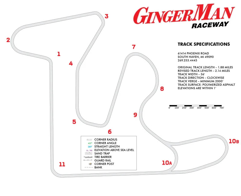 GingerMan’s back half is nothing but a series of medium-speed sweepers. As we ran the course in reverse Saturday afternoon, I took to referring to this section as the swamp because I kept getting mired there, struggling to find a line that let me drive the car the way I knew to be fast — straight line to the turn-in marker, get it pointed the right way, mash throttle, repeat. And you can do it that way, but as I learned on that first day, it’s not the quickest way ’round the track in the CT4. My times suffered considerably in the afternoon as a result, tumbling from my first-place finish in the morning heat to 5th overall by the end of the day. And so I vowed to take that lesson to heart Sunday and try a different approach.