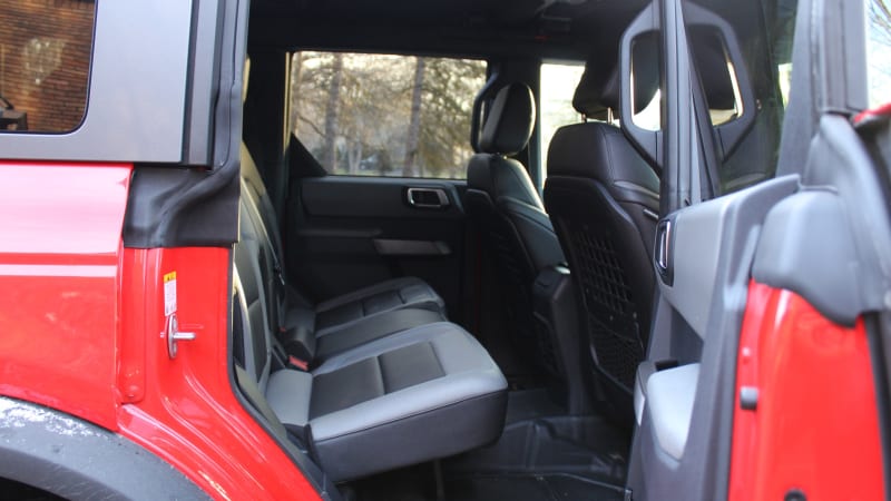 We had a number of people come up to us and ask whether the Bronco 4-Door was in fact the baby Bronco Sport – they were expecting it to be bigger, perhaps more like the F-150-based Bronco of O.J. infamy. It’s not quite that big, but the 4-Door is still a midsize SUV with a family-friendly back seat (a Britax rear-facing child seat easily fit without moving the front seat too much) and a cargo area that betters the Wrangler Unlimited’s. You can get an idea of how much both can carry, plus the Land Rover Defender and Toyota 4Runner, in our Bronco luggage test comparison.