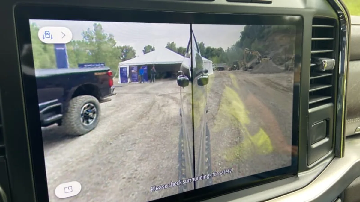 Ford also let us play around with the Super Duty Tremor on a stretch of its off-road development course. Like the Expedition Timberline, the Super Duty makes good use of Ford’s Trail Turn Assist feature. While it was introduced to help Bronco get a feature edge over Wrangler and tighten its turning circle a bit off road, Trail Turn Assist really shines in these longer trucks that might otherwise find trail corners too tight to be negotiated in just one go. It’s a bit more expensive than simply making a three-point turn, but it’s far more likely to impress your passengers. The Tremor’s off-road camera setup is handy for that too.