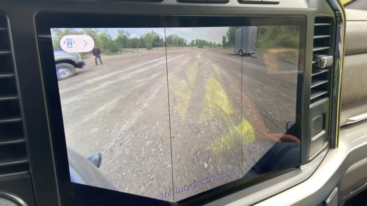Ford also let us play around with the Super Duty Tremor on a stretch of its off-road development course. Like the Expedition Timberline, the Super Duty makes good use of Ford’s Trail Turn Assist feature. While it was introduced to help Bronco get a feature edge over Wrangler and tighten its turning circle a bit off road, Trail Turn Assist really shines in these longer trucks that might otherwise find trail corners too tight to be negotiated in just one go. It’s a bit more expensive than simply making a three-point turn, but it’s far more likely to impress your passengers. The Tremor’s off-road camera setup is handy for that too.