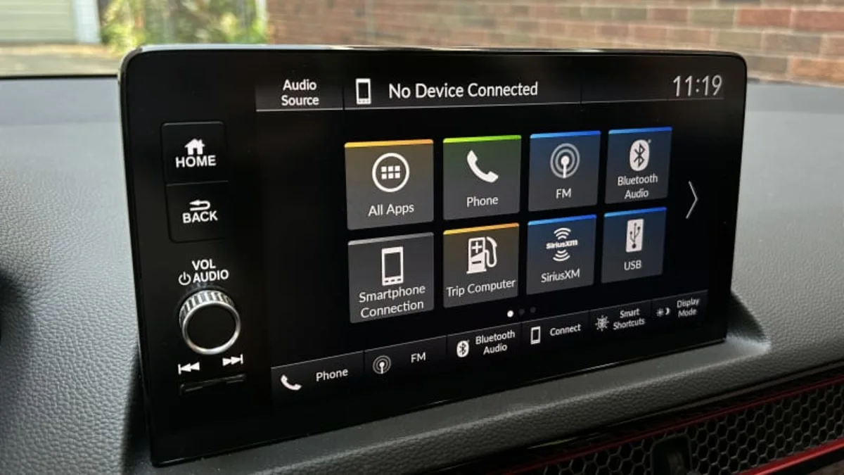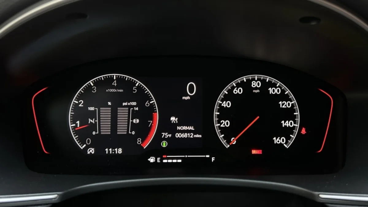 Right beyond that wheel lies a bit of a head-scratcher for a performance vehicle, though, as the Si doesn’t even have a coolant temperature gauge. It’d be best if Honda integrated the Type R’s LogR displays here to keep an eye on all your fluids and temperatures, especially because lots of folks will use an Si for autocross or track work. At the very least, a couple gauges for coolant and oil temperature would be nice. Running around with the tach needle buried deep in the rev range for hours straight in high temperatures, as I did, will make anybody want to be hyper-aware of a car’s vitals.