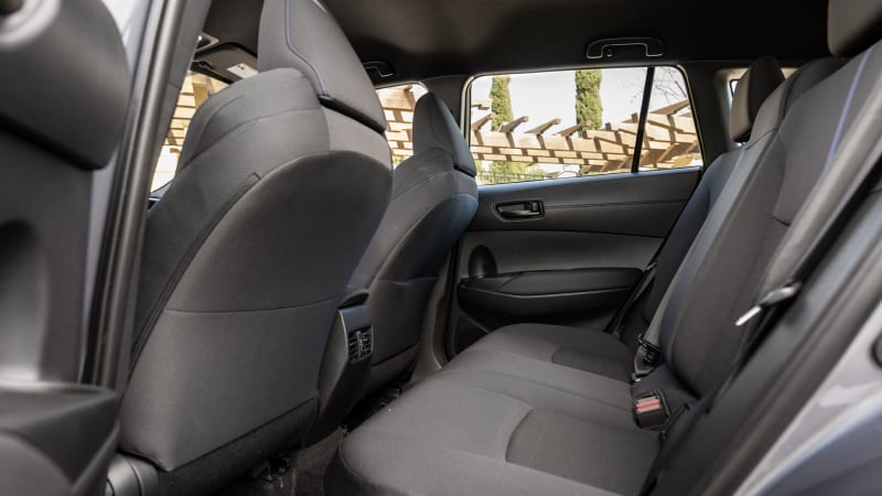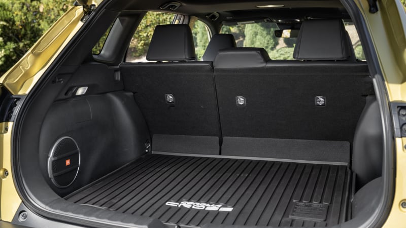 The HR-V’s cargo volume is greater on paper at 24.4 cubic-feet (pictured below left). In our real-world testing, though, the HR-V underwhelmed due to an angled liftgate opening that robs it of functionality. We still managed to fit six suitcases, but it wasn’t easy. We have not tested the Corolla Cross (pictured below right). On paper, it has 24 cubic-feet of cargo space behind its back seat with front-wheel drive and 21.5 cubic-feet with all-wheel drive or a hybrid powertrain. The Hybrid also loses its spare tire. If hauling stuff is important to you, look to any of the following competitors: Ford Bronco Sport, VW Taos and Kia Seltos.