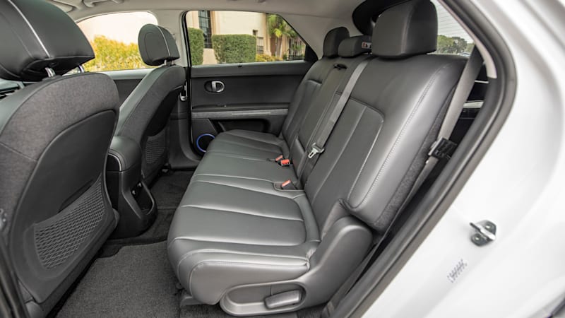 Step up to the SEL trim, and you add luxuries like power-folding mirrors, a power liftgate, leatherette seats, wireless phone charging, a heated steering wheel, an auto-dimming rearview mirror, forward parking sensors, and Highway Driving Assist II. Go all the way to the Limited, and Hyundai throws in 20-inch wheels, fancier front lighting, rain-sensing wipers, a sunroof, driver memory settings, ventilated front seats along with the driver footrest, Bose audio, a head-up display, the sliding center console, V2L power capability, blind spot cameras and a 360-degree surround camera.