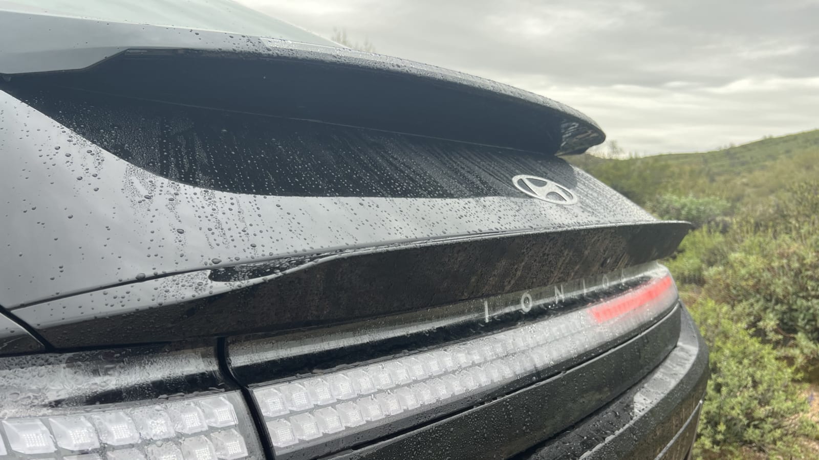 We started this rainy drive in a Limited AWD. If you’ve driven the Ioniq 5, or the Kia EV6, you pretty much know what to expect in terms of acceleration. It’s not neck-snapping quick, but a 5-second 0-60 sprint is plenty to elicit joyous chuckles from occupants. Pushing the Ioniq 6 through corners, the sheer amount of grip it displays is delightful, even on the wet desert pavement. It feels more glued to the road than the tail-happy shenanigans we were able to coax from the Ioniq 5. The suspension tuning is a treat, too. It’s stiff enough to trace the undulations of the road, but anesthetized to cracks, manhole covers and other imperfections. The 6’s character in motion happily reflects its sporting exterior, and complements its torque-rich powertrain.
