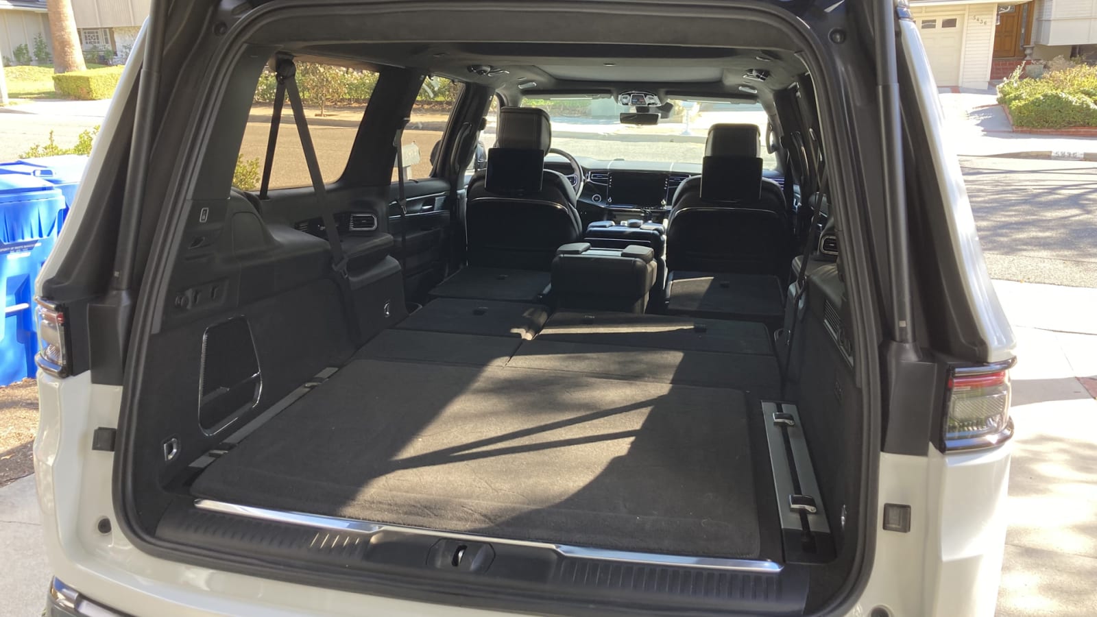 It’s underpinned by the same truck platform as the Ram 1500 pickup, but hides that part of its lineage under a design language that is Jeep at its core while taking the look in an even more upscale direction. It doesn’t sacrifice utility by doing so, though. The Wagoneer L is massive, with 44.2 cubic feet of cargo space behind the third row, besting the Expedition Max and Suburban. There’s no Trailhawk or even Trail Rated version, but the Wagoneer can still hold its own when the road disappears thanks to an available two-speed transfer case, air suspension, tow hooks, skid plates and all-terrain tires. The Wagoneer can also tow up to 10,000 pounds when properly equipped.
