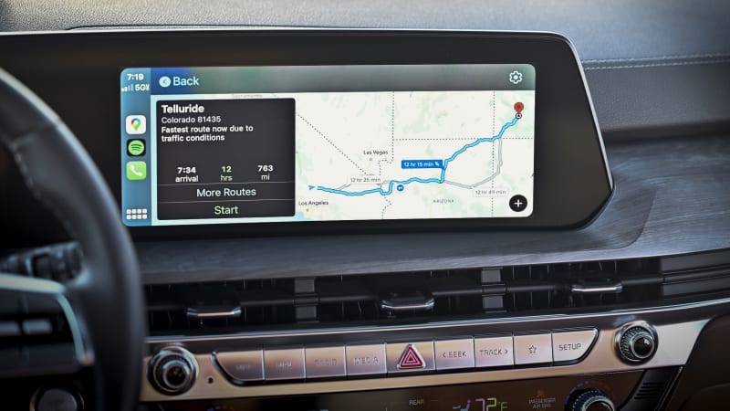 Hyundai and Kia share nearly all the same technology features and, not unlike the chassis, unique designs masking a common infotainment operating system and hardware concept. Each has a 12.3-inch touchscreen with a row of physical menu shortcut buttons (including the excellent customizable star button that’ll call up whatever you want such as Apple CarPlay). Upper trims get a 12.3-inch instrument panel screen. Although the touchscreen user-interface and IP displays have different graphics and layouts, overall usability is similarly excellent.