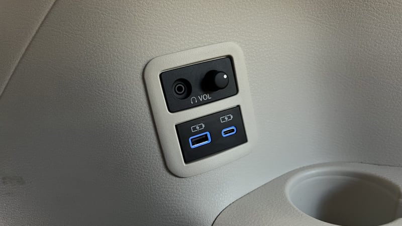 Third row passengers don’t have the same luxuries, though. The right side has USB-A and -C ports below headphone jack. The right side just gets the headphone jack.