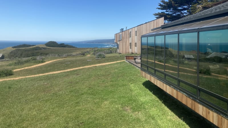 The lunch stop is The Sea Ranch Lodge, or rather the ocean-view restaurant adjacent to the soon-to-be-reopened hotel nestled on the headlands overlooking the Pacific. Every interior inch of its 1970s modern architecture is lined in wood – if it wasn’t for the California coast out the windows, I’d swear I was in Sweden.