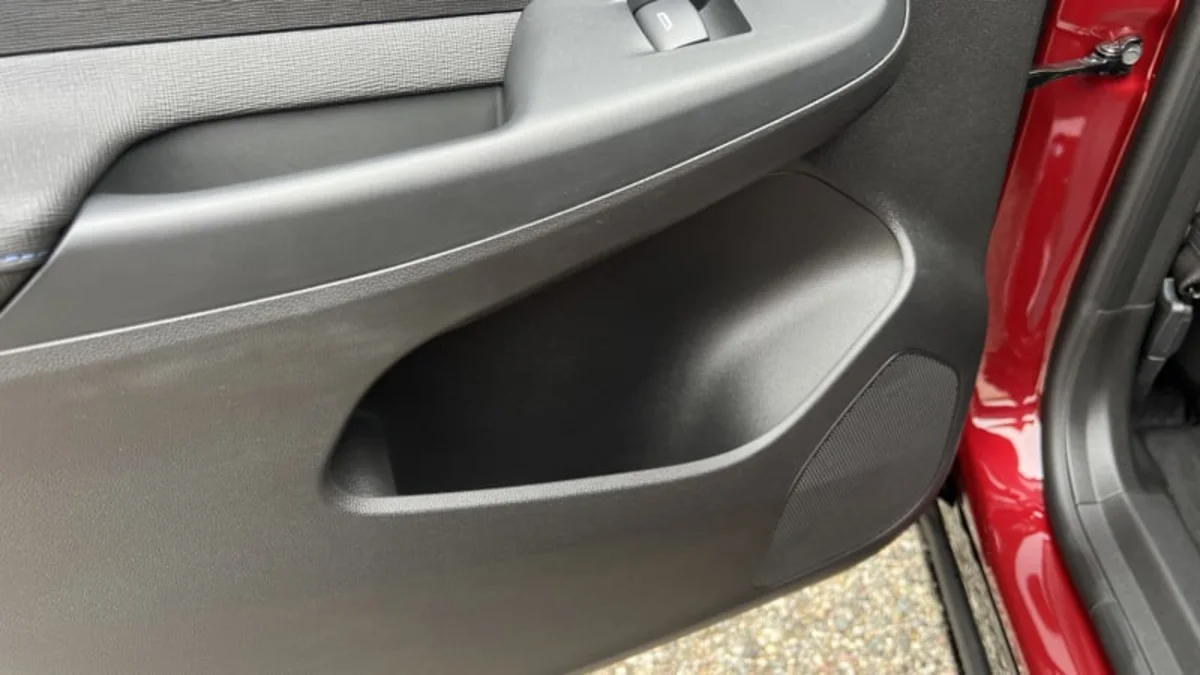 The rear door pocket looks like a shortened version of the ones up front. Inauspicious, but we still have to cross our fingers and check it.