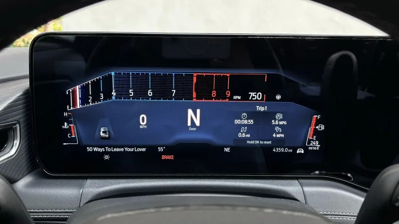 Ford’s renowned Coyote V8 gets 30 more horsepower in the GT, and manages a cool 500 hp in the new, range-topping Dark Horse that replaces and betters the Mach 1. The 2.3-liter EcoBoost gets an extra 5 horsepower, and there’s no longer a “High Performance Package (HPP) variant.” It’s now exclusively equipped with the 10-speed automatic, though a six-speed manual remains a (fantastic) option with the V8. And speaking of maxing out on fun behind the wheel, the 2024 Mustang introduces a pair of just-for-the-helluvit features: the Remote Rev function that lets you rev the engine with the key fob, and the wildly fun drift brake.