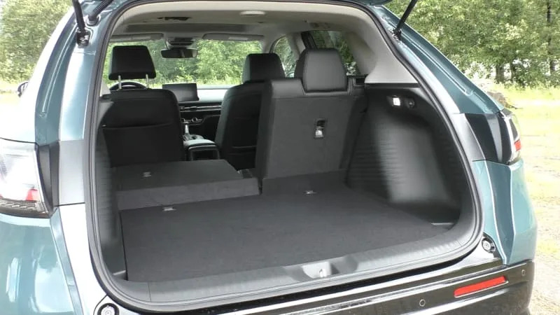 In terms of cargo space, there is 24.4 cubic feet of cargo space (basically the same as before, but again, long story). That’s only mid-pack, with the Seltos, Taos and Bronco Sport having more. More importantly, we found the HR-V’s angled liftgate opening makes it difficult to load luggage inside and reduces functionality compared to not only those more-voluminous-on-paper competitors, but others like the Buick Envista and Subaru Crosstrek. The HR-V does at least boast a back seat that folds totally flat thanks to a smartly engineered, multi-hinged seat bottom that dips down into the footwell. No dual-level cargo floor necessary.
