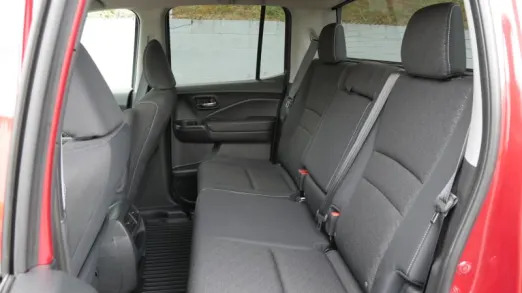 On the outside, the Ridgeline is basically the same length and height as other midsize crew cab pickups. Its wheelbase isn’t quite as long, and it has less ground clearance (7.6 inches), but it’s notably wider. However, the Ridgeline’s unibody “crossover” construction means these similar dimensions on the outside do not translate into similar measurements inside. Simply put, the Ridgeline cabin is far roomier and more comfortable for passengers. You can see this most in terms of rear-seat legroom, and all that extra width results in a similar advantage in shoulder room. If you’re considering the Ridgeline as an alternative to large crossover SUVs like the Pilot or Passport, though, it’s worth noting that there is less rear-seat legroom and the seat does not recline.