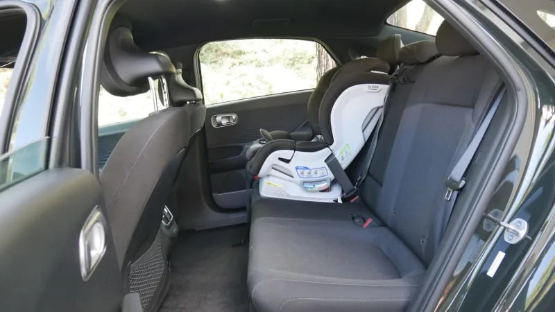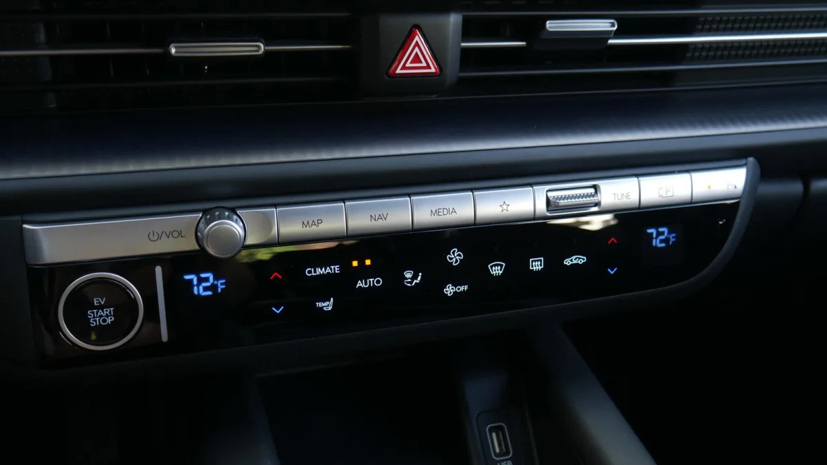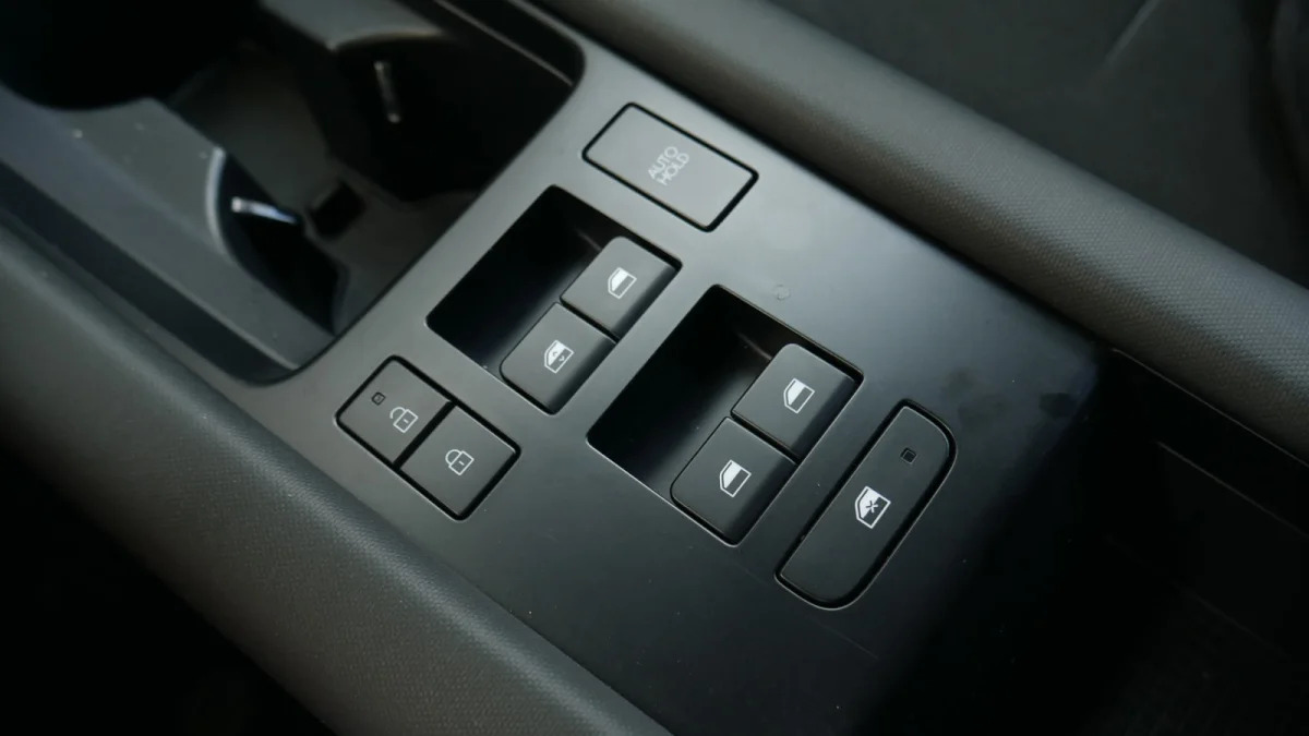 Materials quality also doesn’t look or feel as good as what you’d find in a Hyundai Sonata, for instance, or other midsize sedans. This is particularly evident in the base SE (pictured above in black), which is the only trim level available with the 361-mile range estimate. Its mandatory cloth trim looks and feels cheap, while the hard plastic phone bin will be a constant reminder that you didn’t opt for a high trim as your phone slides around without the benefit of wireless charging. You can read more about the Ioniq 6 SE interior here, but in general, we wish there were a way to get the max range with even a slightly nicer and better-equipped interior.