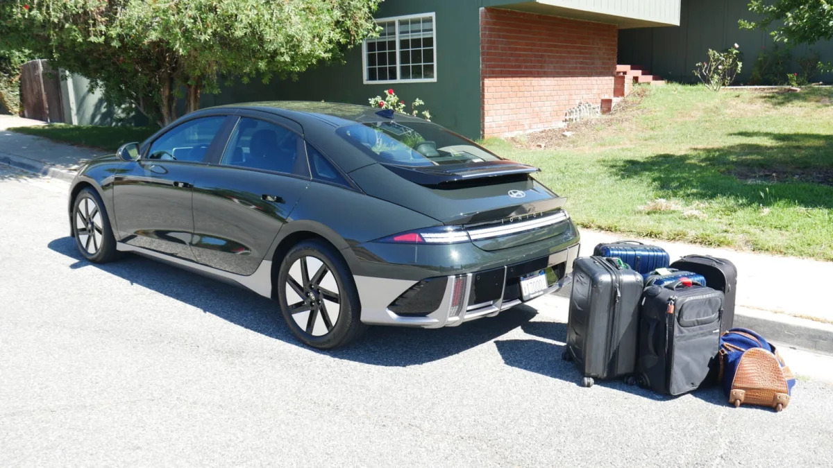 Taking a close look at just how much you can fit in the Ioniq 6’s trunk, which is small for a midsize sedan.