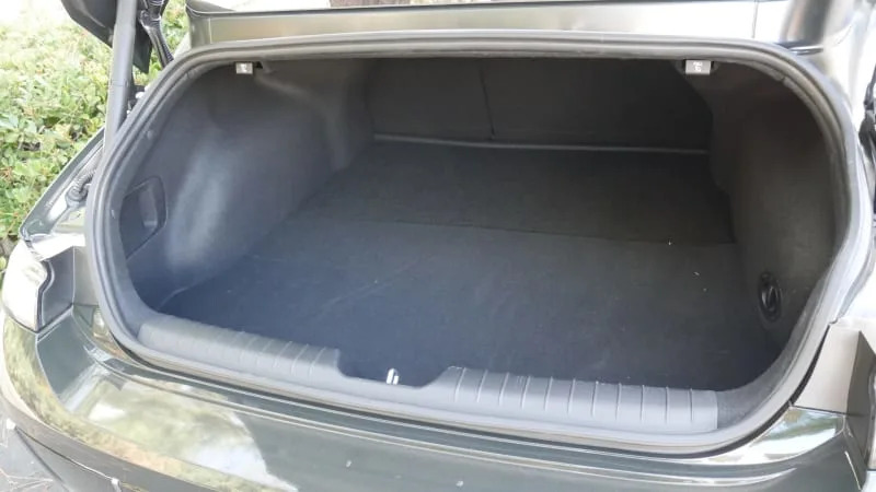 The trunk, on the other hand, is poor. Its volume of 11.2 cubic-feet would be small for a compact sedan, let alone a midsize one. Not surprisingly, the Ioniq 6 was unable to swallow all the bags of our standardized luggage test. By contrast, the Sonata’s 16.3-cubic-foot trunk had space left over for multiple bags. There is a substantial underfloor storage area, however, plus a frunk compartment perfectly sized to store the tire mobility kit and charge cord.