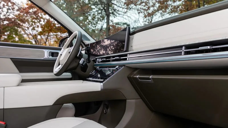 A curved display houses a pair of 12.3-inch screens, one for the gauges and another for the Hyundai Group’s latest multimedia system that gets wireless Apple CarPlay and Android Auto among other upgrades and updates. To the right, there are two gloveboxes: a top one behind the dash panel and a more traditional one by the passenger’s knees. This is in addition to deep door pockets that’ll hold huge water bottles and storage space under the center console, as well.