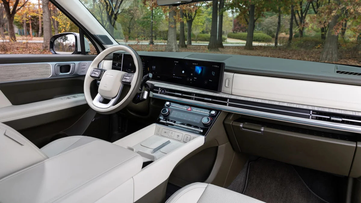 Long stints of hella-dull Korean highway cruising mean Hyundai’s Smart Cruise Control 2 system has plenty of time to shine, though this tech isn’t perfect. The lane-centering system has a tendency to ping-pong the SUV between either side of the chosen lane, and the lane-change assist isn’t proactive, like with General Motors’ Super Cruise. You still have to signal to engage an auto lane change.